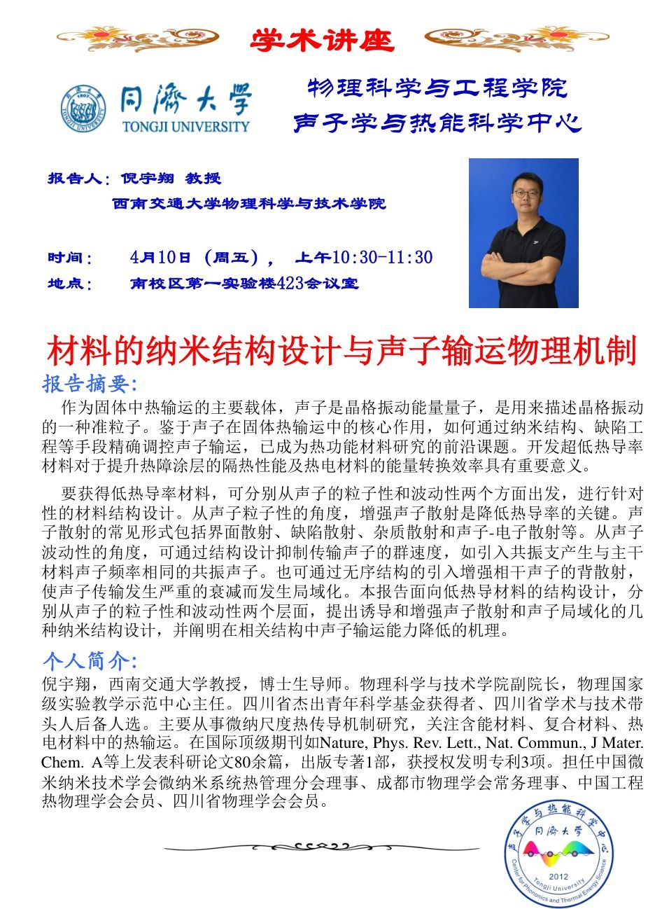 主讲人:倪宇翔 教授 西南交通大学物理科学与技术学院