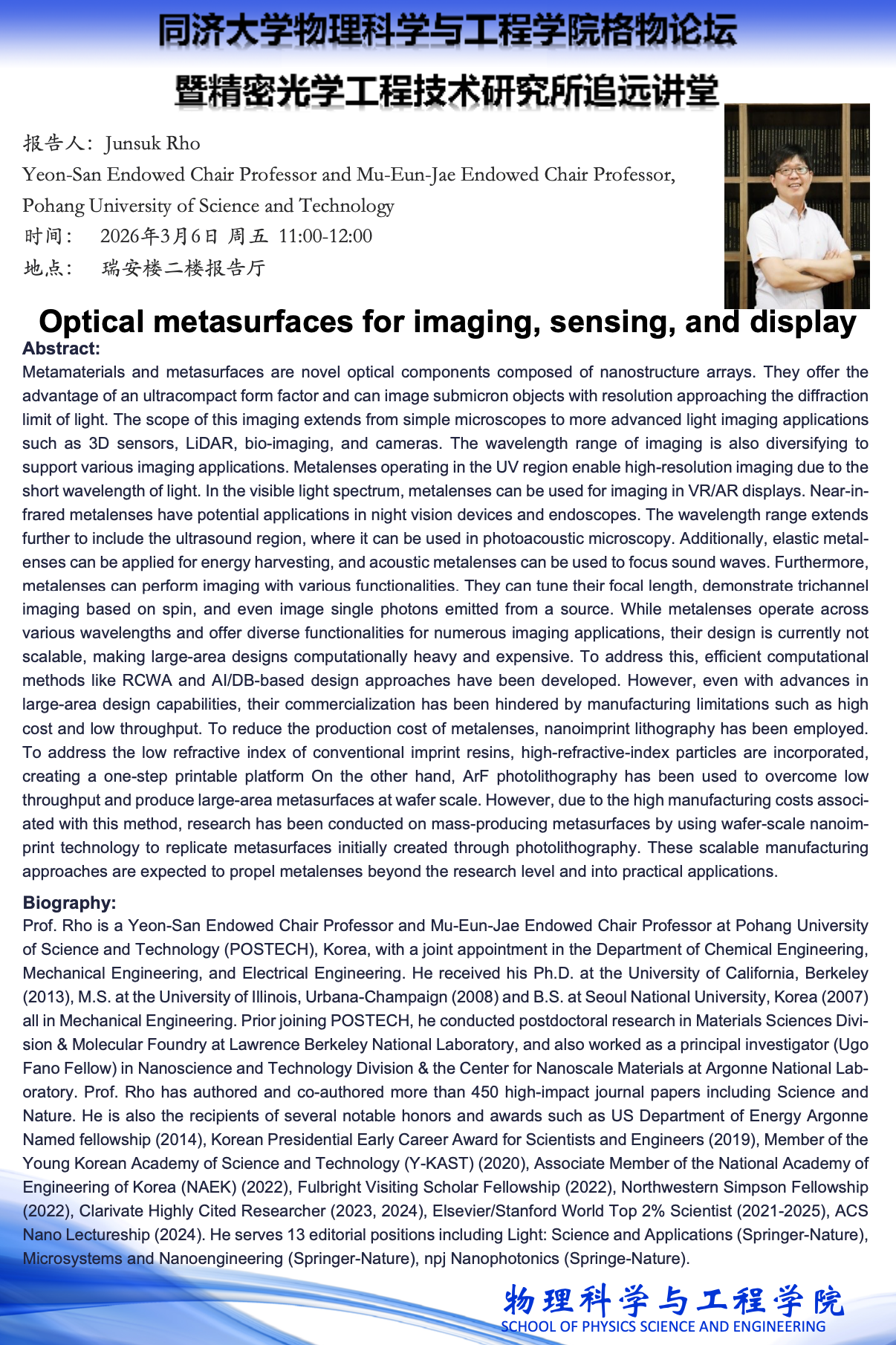 【同济高等讲堂】— 超构表面光场调控:从界面相位到平面光学