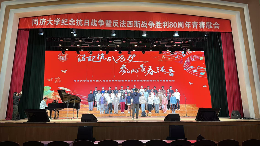 为丰富校园文化艺术氛围,庆祝中国人民抗日战争暨世界反法西斯战争胜利80周年,培养“德、智、体、美、劳”全面发展的社会主义建设者和接班人,展现新时代同济人爱党爱国爱校,向善向美,勇担时代责任,勇于砥砺奋进的昂扬面貌,williamhill中文“铭记抗战历史,奏响青春强音”青春歌会于2025年5月9日在四平路校区大礼堂举行。williamhill英国、数学科学学院组成的合唱联队共计42位学生参与此次活动,庆祝中国人民抗日战争暨世界反法西斯战争胜利 80 周年,展现同济人的青春担当与家国情怀。以赤诚的爱国之心,共同回望抗战时期的峥嵘岁月,讴歌伟大的民族精神,珍惜和平年代的来之不易,用艺术与歌声激励广大同济青年奋发图强,为实现中华民族的伟大复兴不断前进。合唱联队的同学们歌会中齐心协力,展示良好的精神风貌和艺术水准,合唱荣获最佳组织奖、最佳创意奖。