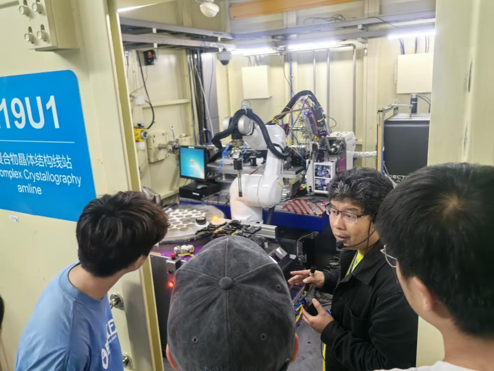 进入硬X射线线站,同学们一窝蜂挤在铅门观察窗前。液氮罐蒸腾的寒气中,机械臂正将蛋白质样品送入光束路径,咕嘟作响的气泡在低温容器里翻腾。“内部错综复杂缠绕着的排线,咕咕冒着气泡在液氮中的蛋白质样品和科幻的机械臂让我们感受到了装置的先进。”白振强凝视工程师调试光学元件的专注侧影,突然领悟课堂理论与工程实践的差距:“那些曾写在作业本上的复杂光路计算背后,原来是这样漫长、细致、容不得半点马虎的手动调试与模拟验证。”